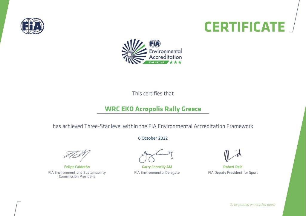 Tο WRC EKO ACROPOLIS RALLY Διεθνές Παράδειγμα Περιβαλλοντικά Βιώσιμου Μηχανοκίνητου Αθλητισμού