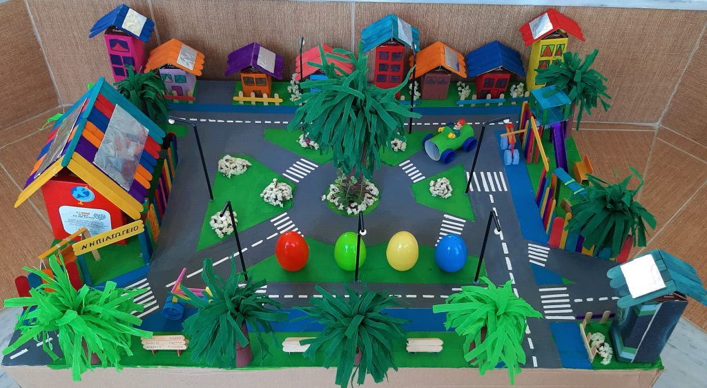 Οι μαθητές του 9ου Νηπιαγωγείου Πύργου Ηλείας θέλοντας να συντελέσουν ώστε να αλλάξει σελίδα η πόλη τους, να γίνει μια πόλη πιο πράσινη, φιλική, αειφόρα, πιο έξυπνη και οικονομικά βιώσιμη, δημιούργησαν με ανακυκλώσιμα υλικά, την πόλη που ονειρεύονται…! Έξυπνους κάδους και αυτοματοποιημένο σύστημα υπόγειων κάδων με χρήση καρτών και QrCode, χώρους πρασίνου, ποδηλατοδρόμους, φωτοβολταϊκά συστήματα σε δημόσιους χώρους, συνοικιακή κομποστοποίηση κ.α. Μια πόλη ασφαλής, χωρίς αποκλεισμούς, με άμεσα οφέλη για όλους, τη βελτίωση της καθημερινότητας και της ποιότητας ζωής των πολιτών της, καθώς και την παροχή ψηφιακών υπηρεσιών στο θέμα της ανακύκλωσης.”