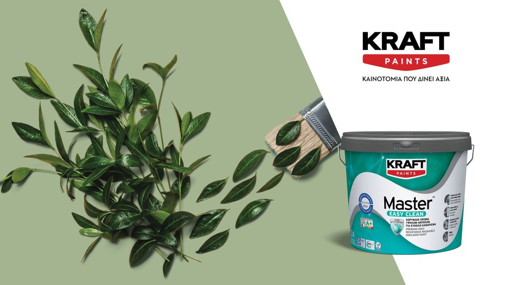 Επενδύοντας διαρκώς στην καινοτομία και δημιουργώντας προϊόντα με προστιθέμενη αξία, φιλικά στο περιβάλλον, η KRAFT Paints παρουσιάζει το Master Easy Clean, το κορυφαίο σε πιστοποιήσεις χρώμα εσωτερικής χρήσης της σειράς Master Family. Με πιστοποιήσεις όπως οι V-Label, REDcert², Indoor Air Comfort® Gold, TŪV Packaging, κ.α., το Master Easy Clean είναι το πρώτο πιστοποιημένο Vegan χρώμα στην Ελλάδα χωρίς συστατικά ζωικής προέλευσης, που συμβάλλει στην καλύτερη ποιότητα του εσωτερικού αέρα, με εξαιρετικά χαμηλές εκπομπές πτητικών οργανικών ενώσεων. Επίσης παράγεται με πρώτες ύλες που αφήνουν χαμηλό αποτύπωμα άνθρακα, ενώ η συσκευασία του αποτελείται από 46% ανακυκλωμένο πλαστικό. Πιστή στην τεράστια ευθύνη της απέναντι στο περιβάλλον και στην ελληνική κοινωνία, η εταιρία επιλέγει προμηθευτές που ακολουθούν καλές πρακτικές βιώσιμης ανάπτυξης, δημιουργώντας έτσι μια πράσινη εφοδιαστική αλυσίδα που από την πρώτη ύλη μέχρι το τελικό προϊόν λειτουργεί με βάση τη βιωσιμότητα.